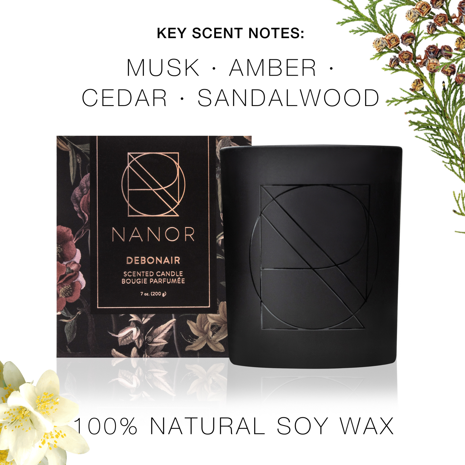 BESTSELLER - One spark. That’s all it takes to be entranced by our boldly masculine DEBONAIR scented candle. Its masterful melange of musk, amber and cedar create an intoxicating scent that lingers seductively, creating an ambiance of intrigue. Suited to those drawn to rich, woody fragrances, this warm, rich and sensual scent will cast a spell of mystery and allure on you that you won’t want lifted.