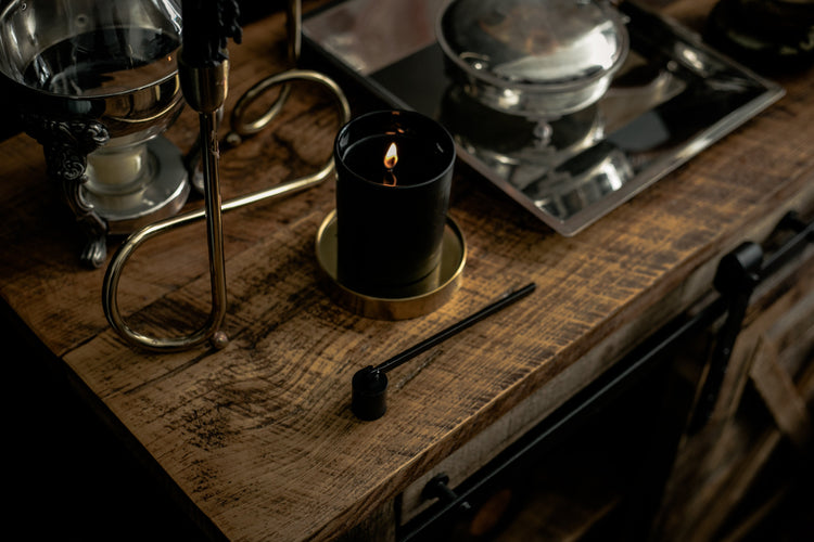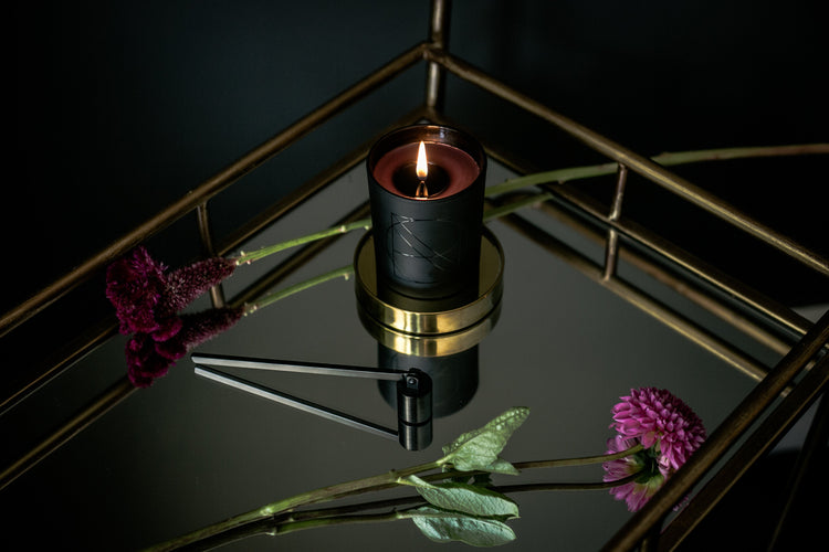 Using a candle snuffer to extinguish the candle flame will avoid smoke and will keep your candle wax and candle vessel free of soot.