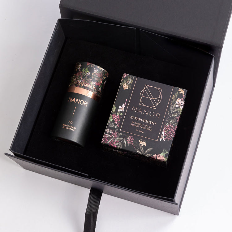 The perfect gift for anyone who loves and appreciates burning beautiful scented candles. Our candle duo set includes a 7oz scented candle + matching match sticks. Add our beautiful premium matte black box to make gifting simple yet chic.