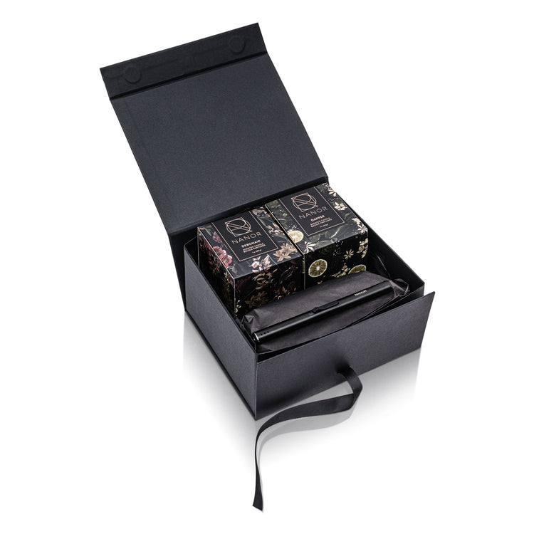 The perfect set for anyone who loves and appreciates burning beautiful scented candles. Our candle duo set includes 2 7oz scented candles of your choice + our sleek matte black refillable lighter. Add our beautiful premium matte black box to make gifting simple yet chic.